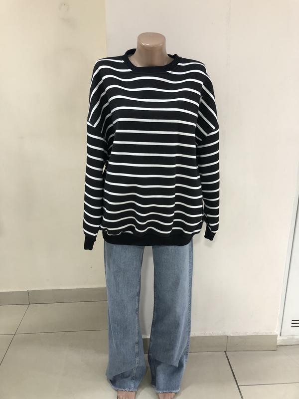 Світшот кофта на тоненькому флісі. Чорна в білу смужку . Тканина не кошлатиться. Виробник Туреччина. Розмір: М,Л Ціна-600