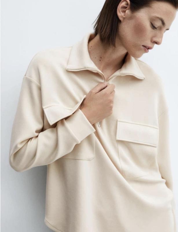 Світшот від Mango , розмір m Тканина трохи закашлатилась в районі коміра Колір молочний У складі віскоза з поліестером Довжина 68 см НОГ 58 см Рукав від коміра 77 см