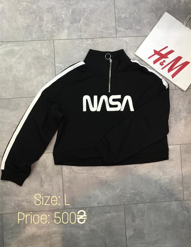Черный свитшот. На рукавах белые полосы вставки. Ворот стойка на молнии.Фасон свободный, укороченный, утепленный. Размер L/ Замеры изделия: Длина изделия по переду 49см, по заду 53см. Плечи 56см. Длина рукава 56см на манжете резинке. ПО внизу 58см резинка. ПОГ 61см. Ширина ворота стойки 7см. Длина молнии 16 см.