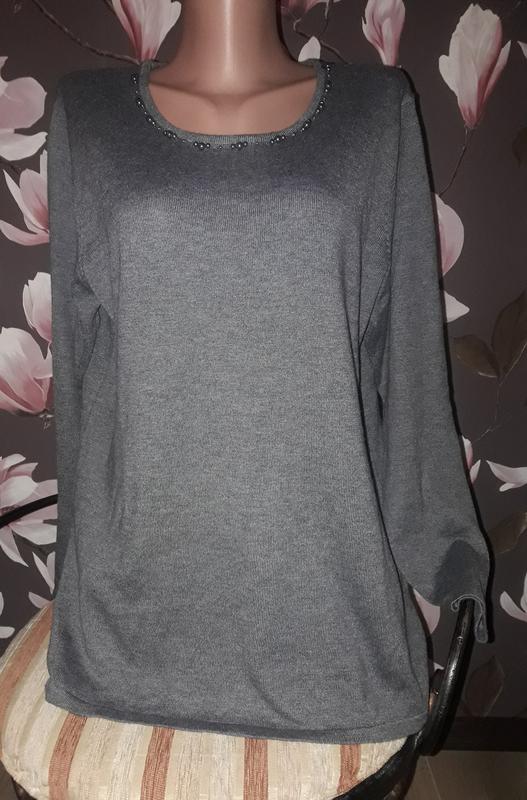 Простенький но очень приятный к телу свитер. 60 % вискоза.Размер 46- 50.