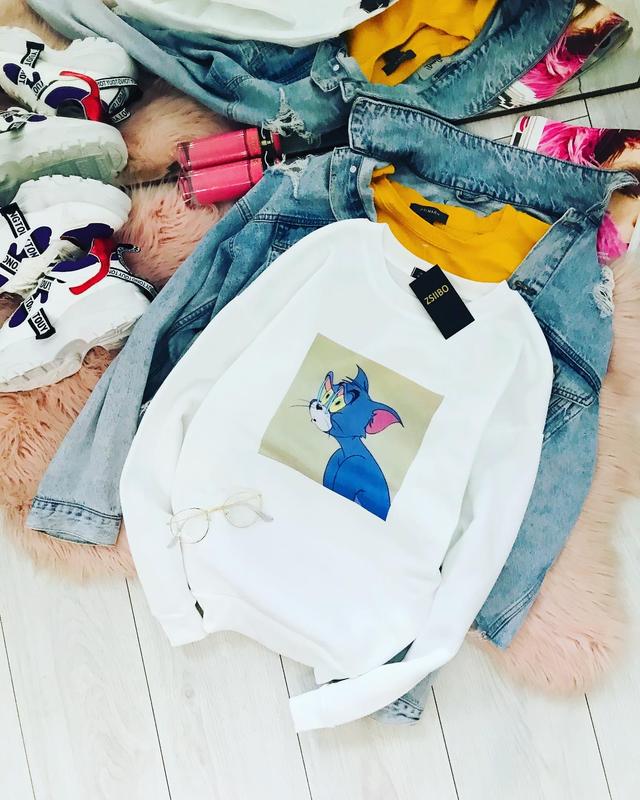 Новый свитшот Tom&Jerry .Размер One size Xs-M .Длина 61 Ог 110 Рукав от горла 77