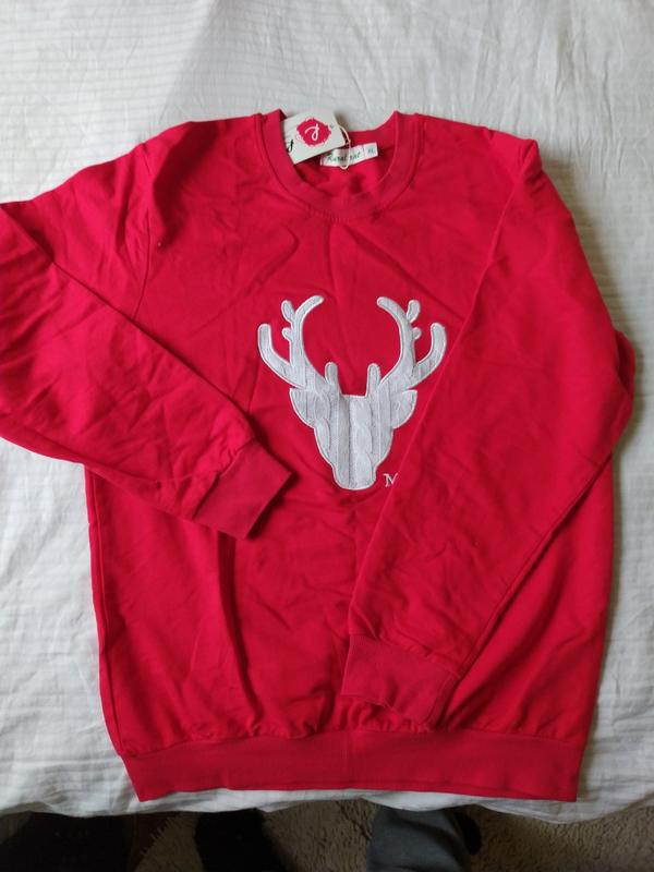 весёлый свитшот с оленем на зимние праздники или просто, чтобы быть ярким и выделяться :) длина 67 см пог 49 см рукав от шва 58 см