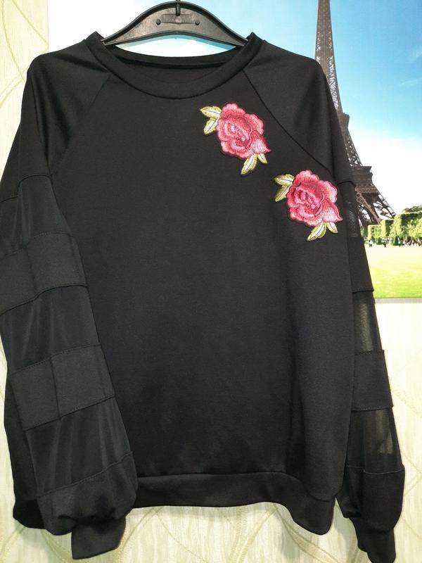 Світшот з трикотажу з вишивкою, комбінований рукав.ПОГ - 57, довжина - 61, рукав від горловини - 72.