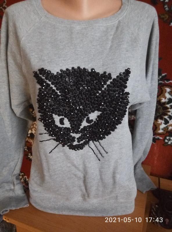 жіночий светр у відмінному стані, кішечка вишита намистинками(всі на місці), м'який приємний котон, рр48