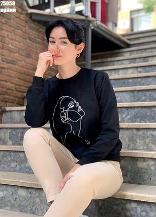 Чёрный свитшот с принтом девушка