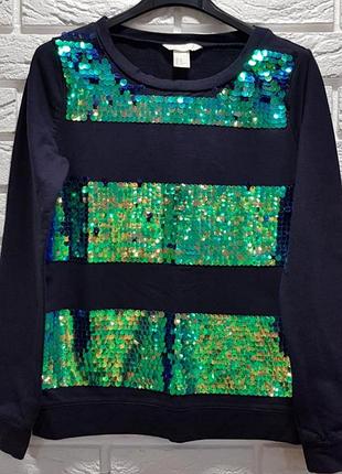 Шикарный джемпер , кофта с пайетками H&M в отличном состоянии. Размер XS. Цвет тёмный синий. Замеры : Сг 42 см, Сб 40 см Ди 56 см , Др 57 см