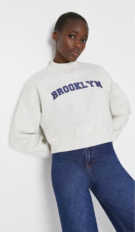 Свитшот с надписью Brooklyn от английского бренда Warehouse, бежево-серого цвета очень классного качества, размер М, новый с биркой.