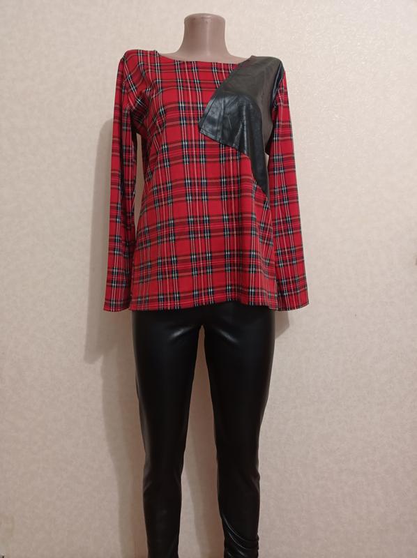 Світшот в клітку з вставкою з еко шкіри DORATTI.Розмір універсальний.з-л. Лосини з еко шкіри на флісі 350 грн. розмір м-л