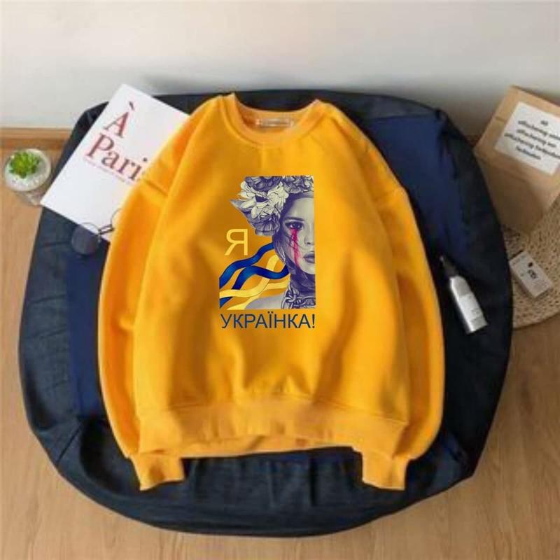 #Світшот Артикул: 850-108 Колір: чорний, молочний, ліловий, жовтий, оливка, салатовий Розміри: 42-44, 46-48 Матеріал: двунить (приємна до тіла Оформлення: термо наклейка високої якості, повноколір