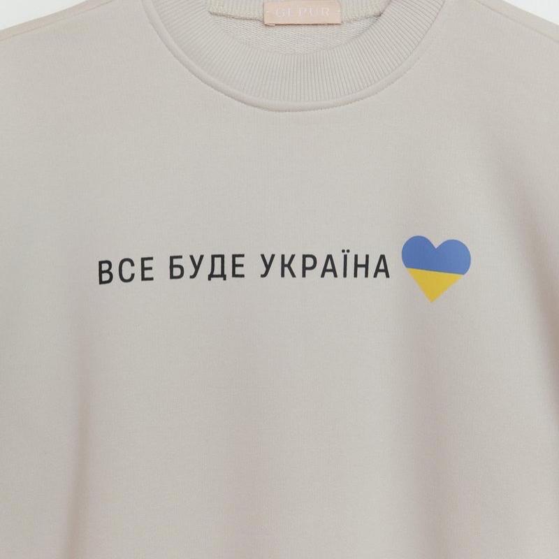 Бежевий світшот Ми вільні, сильні і єдині. Слава Україні! Оригінальний світшот від дизайнерів Gepur, прикрашений патріотичним принтом "Все буде Україна". В якості основного матеріалу була використана бавовняна тканина. Ціна 900 грн