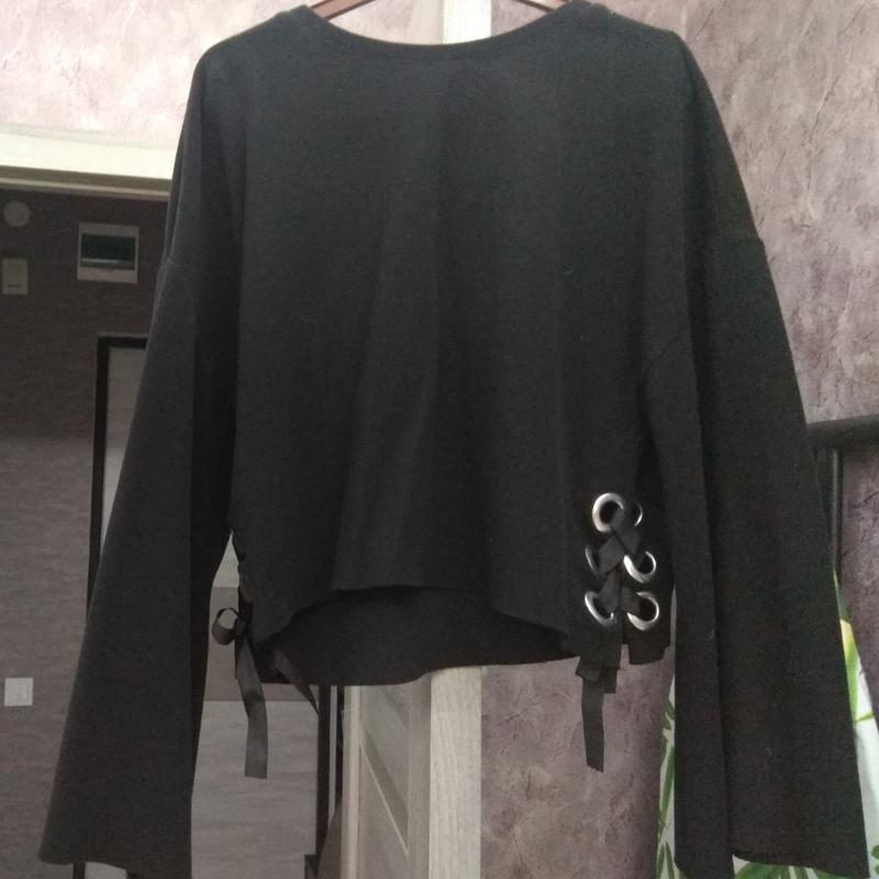 стильный свитер с большими рукавами. по бокам идёт на завязках. размер 42 44.