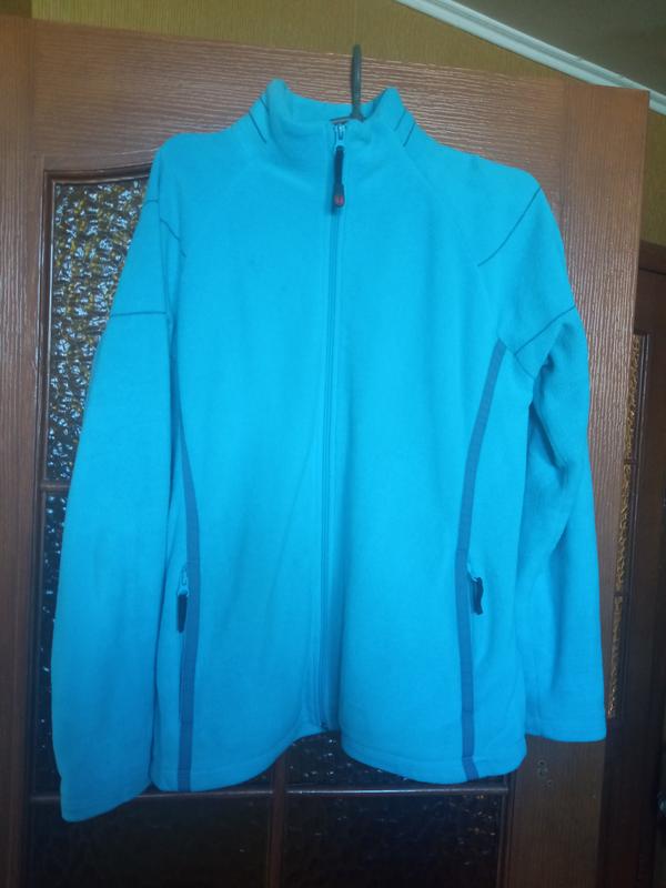 Яскраво-блакитна флісова м'яка кофта на блискавці. Кишені на блискавці. Підклада-дрібна сіточка. Виміри на прохання.
