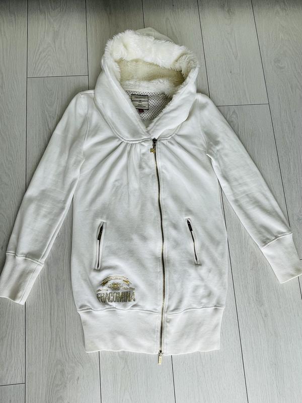 Дуже тепла трикотажна кофта на флісі італійського бренду Fracomina. Капюшон -штучне хутро.