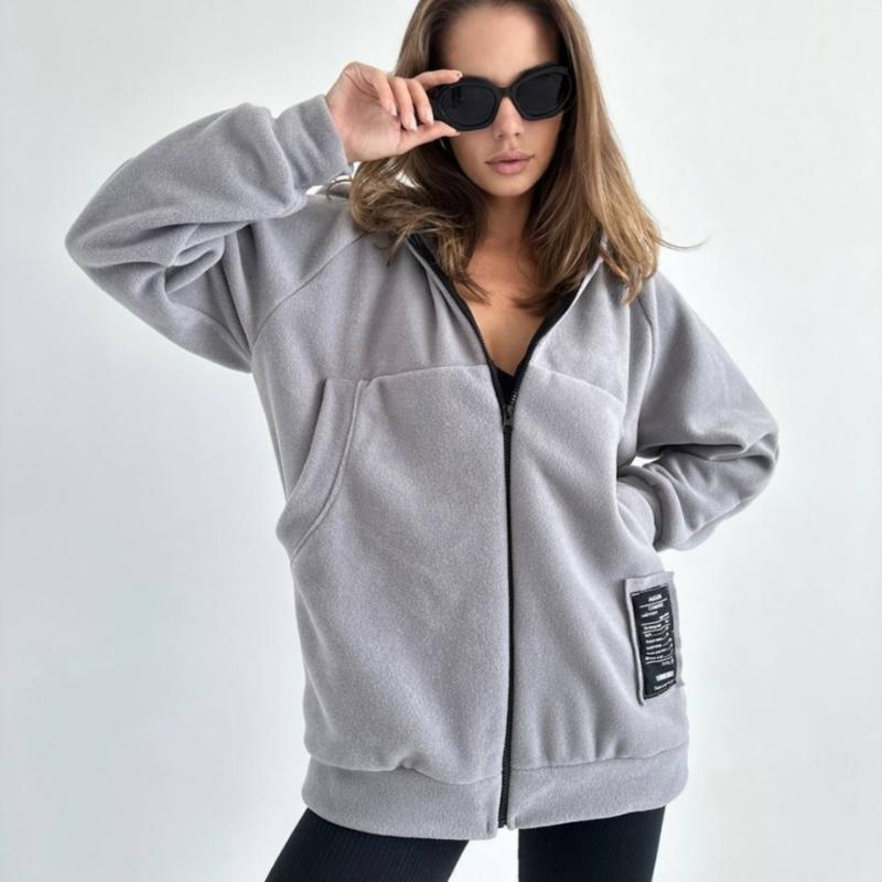 Арт 4936-405 Кофта на змійці та з капюшоном Ціна 850 грн ▫️Тканина: ❗️Турецький Полор Фліс, (щільність 280) ▫️Розмір: універсальний 42-46 ◽️Колір: бежевий, сірий, графіт. 🥰Флісовий оверсайз батнік, дуже мʼякий і приємний до тіла. zefir