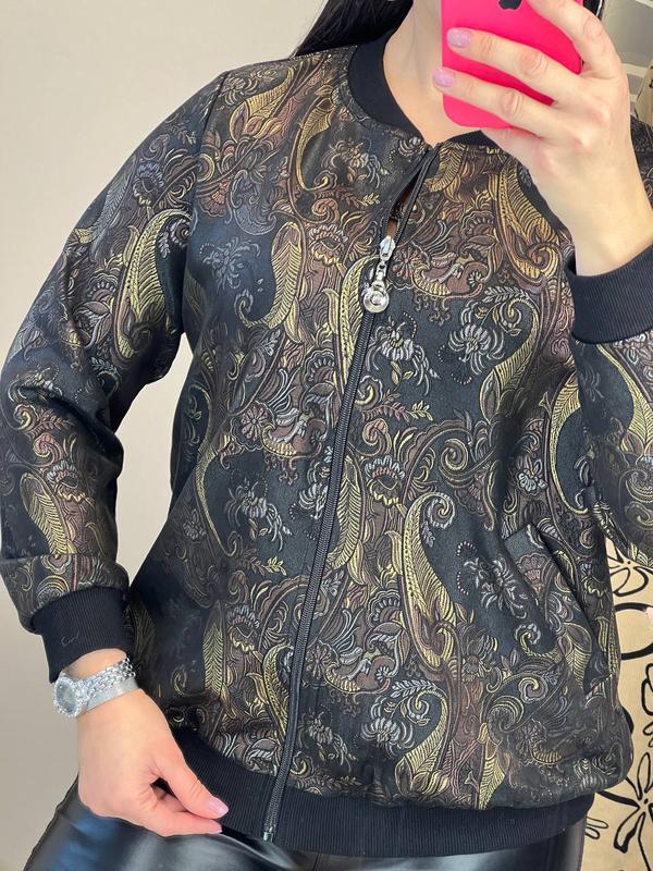 неймовірно красива і зручна кофта на блискавці, практичними манжетами на рукавах і внизу виробу, затишними кишенями з боків, матиме чудовий вигляд на вас у будь-якій життєвій ситуації, підкреслюючи красу фігури, вона легко поєднується зі спідницями, штанами та іншими елементами одягу різних кольорів та стилів, кофта виготовлена з міцної зносостійкої тканини з красивим візерунком розміри: 50, 52, 54, 56, 58, 60 довжина виробу залежно від розміру 67-74 см, об'єм грудей по виробу від 110 до 140 см, довжина рукава від шиї 67-76 см код S 7321-10