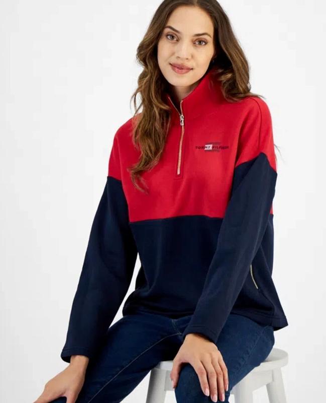 Толстовка жіноча Tommy Hilfiger. Стильна толстовка від Tommy Hilfiger. Комір-стійка з блискавкою. Всередині м'який фліс. Дві бічні кишені на блискавці. Логотип бренда на грудях. Контрастний верх кофти. Чудова якість. Розміри: XXL У Києві самовиїзд і примірювання можливе в робочі дні з 9.30 до 18.00. У невеликому та затишному шоу допоможемо підібрати Вам саме те, що потрібно! Відсилання Новою Поштою і Укрпошта щодня. Доступний накладний платіж без передоплату. Кур'єрська доставка по Києві.