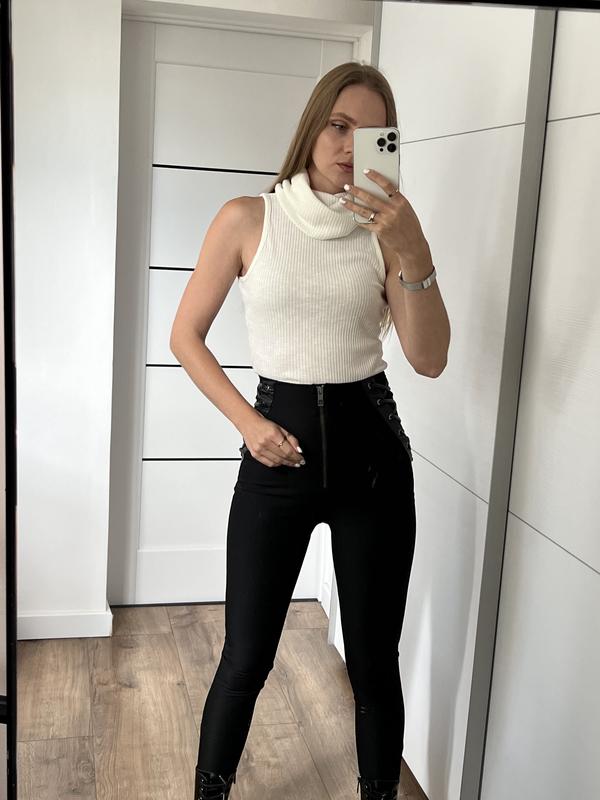 Красивий молочний топ в рубчик з шийкою від river island Стан відмінний, сідає відмінно, можна легко заправити в джинси Розмір вказаний 12, добре сяде на С і М