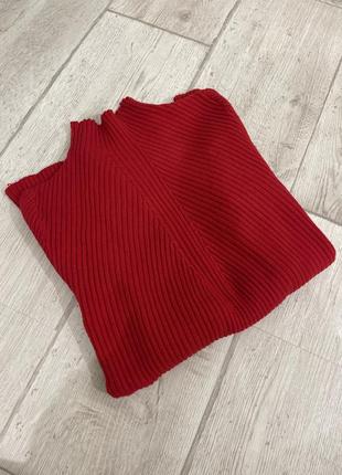 Іде подовженим. Стан ідеальний. Одягнений 1 раз. Не підійшов. Колір насичений червоний. Дуже приємний до тіла. Гольф-стойка. Не обтягує горло.
