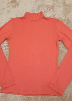 Незаменимая вещь в гардеробе каждой женщины, особенно осенью и зимой. Женский трикотажный гольф с горловиной стойка. Цвет коралловый. Размер универсальный 44-48 (красиво тянется) Длина - 50 см горловина-стойка - 6 см., ПОГ - 38 см., Рукав - 56 см.