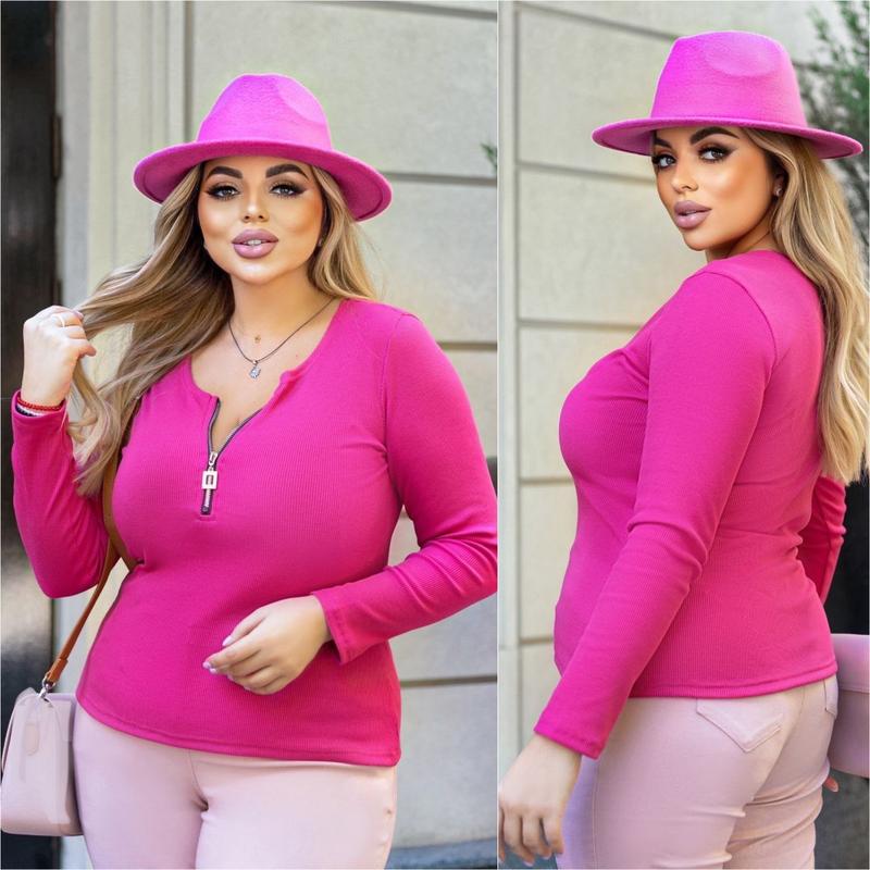 Кофта Код 145 Розміри: 50-52, 54-56, 58-60, 62-64 Тканина: мустанг рубчик дрібний. Добре тягнеться Кольори: малина, блакитний, чорний, електрик Кофта із блискавкою для цікавого декольте😉 . Заміри Кофта тягнеться до +20см 50-52р. Ог 94, От 88, Ос 106, Довжина 65, Рукав 60 54-56р. Ог 102, От 96, Ос 112, Довжина 66, Рукав 61 58-60р. Ог 108, От 104, Ос 120, Довжина 67, Рукав 62 62-64р. Ог 114, От 110, Ос 126, Довжина 68, Рукав 62 ℹ️Параметри моделі на фотоℹ️ Ог 110, От 83, Ос 110, Зріст 166 Розмір 50-52