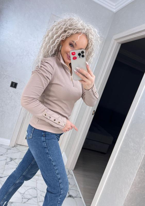 Гольф рубчик на флісі Ажурні декоровані кнопками рукава. Висока горловина, закрита планками, що приховують шви, гольф можна носити як під горло, так і як поло з відкритою горловиною. Дуже теплий та приємний до тіла. Матеріал: рубчик на флісі Тканина тягнеться Розміри: 42-44, 46-48, 50-52 Кольори: джинс, графіт, бежевий