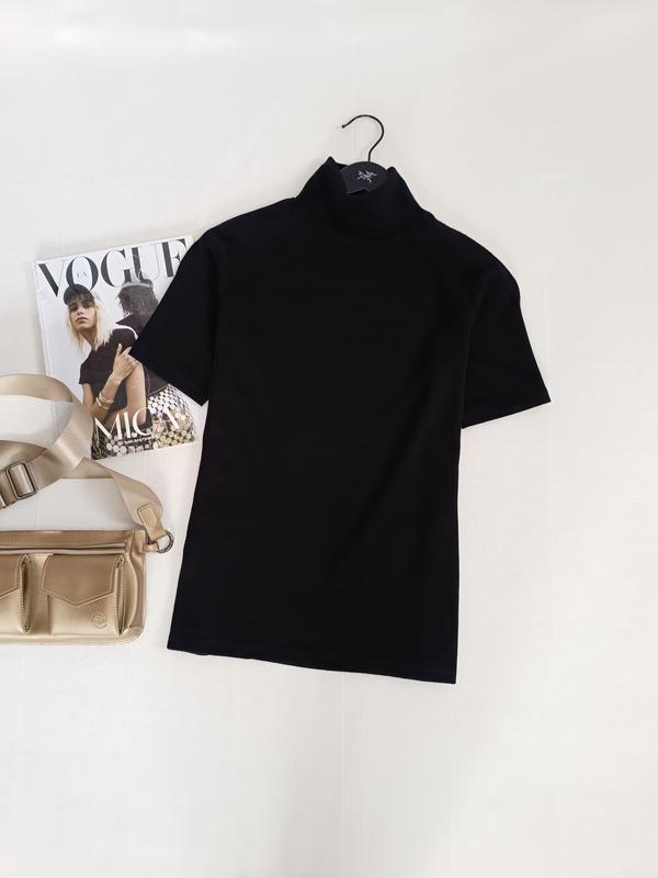 🌿100% шерсті в чорному гольфі з коротким рукавом, тонка в'язка, гарно тягнеться Розмір:М Заміри:ПО грудей 47 см, довжина 60 см