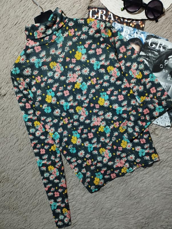 В ідеальному стані. Гарний квітковий гольф. Тканина легка, тягнеться. Виглядає супер 😍 Розмір 16/44/2ХL, але дивіться по замірам Заміри (напівобхват): Груди 50(тягнеться до 59) Рукав 59 Довжина від плеча 56