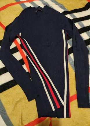 Оригінальний гольфік з "лампасами" під руками M&S лапша рубчик колір темно-синій Розмір 6/34 155 80А