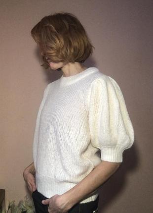 Кофта вершкового кольору у стані нового. Рукав - фонарик. Приємний на дотик. Не колюча, нарядно виглядає Хоча бірка зрізана, склад з натуральної вовни ( мохеру) . У грудях - 52см, довжина 56сме