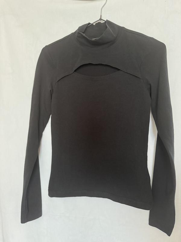 Чорна котонова водолазка з цікавим вирізом на декольте. Розмір XS Склад: 95% бавовна, 5% еластан