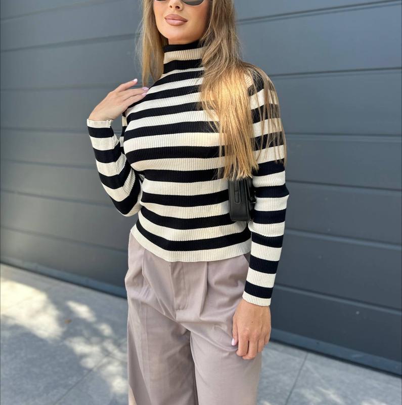 Отримали повтор улюблених гольфів "Жіночий базовий гольф у смужку Матеріал : машинна в'язка Розмір універсал смл 2 кольори : чорно-білий, беж з чорним