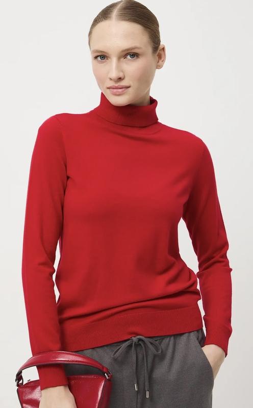 Стильний яскраво-червоний гольф від OLKO з високим коміром. Дуже м’який, еластичний, комфортний у носінні. Завдяки складу з модалом, бавовною та вовною приємно гріє та виглядає дорого. Сідає красиво по фігурі, ідеально для базових та святкових образів. Склад: • 42% модал — м’якість і гладкість • 29% поліамід — еластичність • 29% бавовна — комфорт • 1% вовна — тепло Розмір: S/M (підходить на XS–M завдяки еластичності) Стан: відмінний, без дефектів