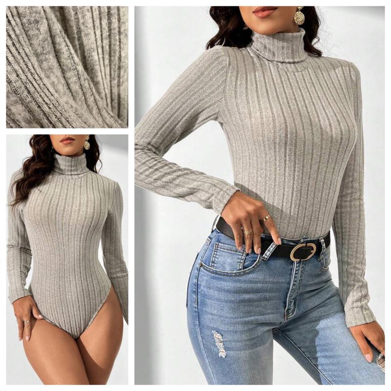 Теплий боді гольф з мʼякого пухнастого трикотажу в рубчик Бежевий меланж Розмір 3ХЛ