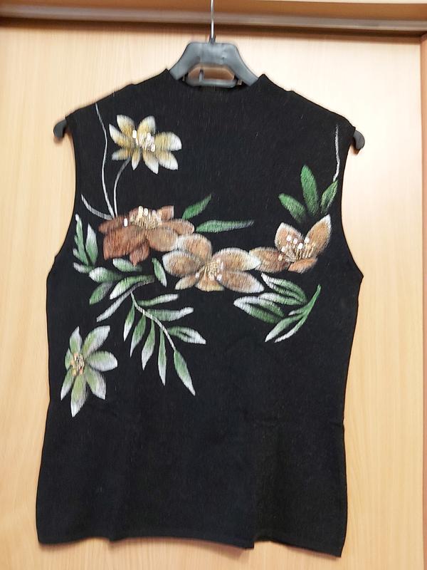 Кофтинка, без рукав.Дуже рідкісна річ, малюнок зроблений фарбами, не змивається, тягнеться, з люрексом. Іспанія.