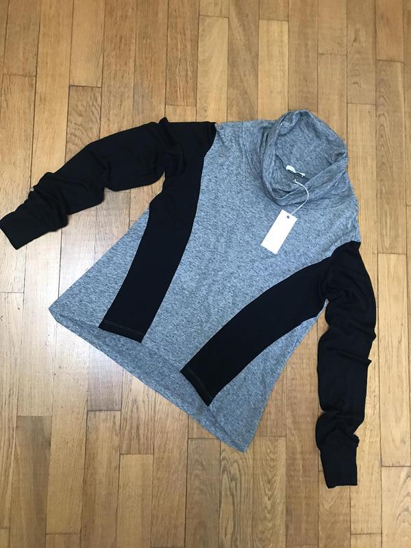 Гольф серый с чёрным, Италия, hanui, бренд, объём груди 47 см, длина рукава 66 см, длина изделия 57 см, спинка длиннее 62 см
