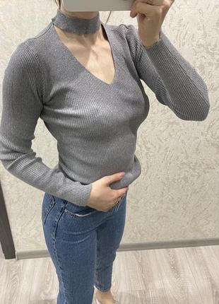 Цікава кофта з горловиною, сіра з люрексовою ниткою, підійде як і до спідниці так і на кожен день