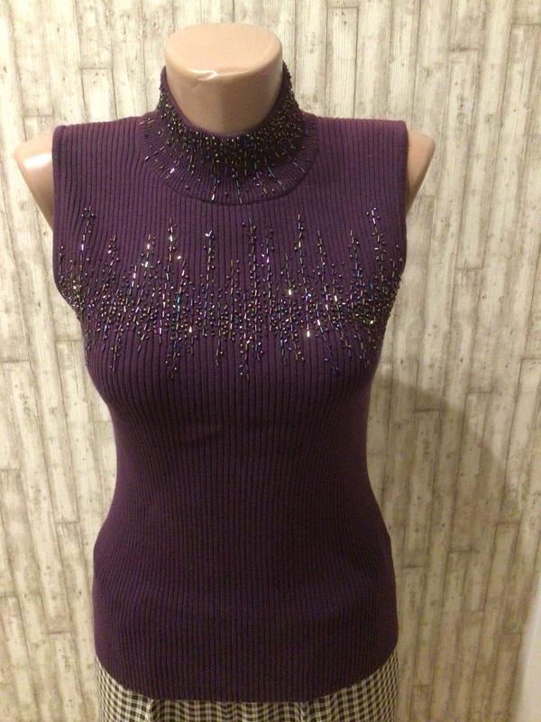Гольф ошатний без рукавів - ідеальне доповнення під піджак або кардиган👍 Довжина 56, пог 40-45, по низу 40-48, плечі 34, пройма 20. Трикотажна гумка - добре тягнеться!