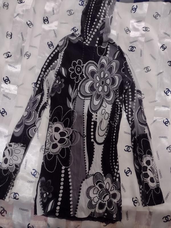 Гольфик добре тягнеться, матеріал - стрейчева дуже дрібна сіточка. Зверху - тканина з малюнком, знизу - чорна.