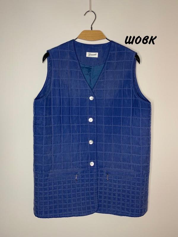 100% шовк, є підклад із віскози та тоненький утеплювач. Перламутрові ґудзики. Заміри: Довжина-73 Плечі-39 Пройма-22 Напівобхват грудей-52 Напівобхват стегон-53 Заходьте на сторінку і дивіться інші мої оголошення! Є дууже багато блузок і сорочок з шовку! Підписуйтесь, т. к. в обраному не знайдете-видаляю для перезавантаження! !!! Доставка здійснюється Новою Поштою, Укрпоштою та тільки по повній передоплаті!!!