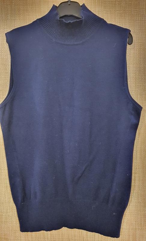 Продам безрукавку Biaggini Безрукавка в дуже гарному стані, добре тягнеться, дуже м'яка та приємна до тіла тканина Темно-синього кольору Розмір М Заміри: довжина по спині 56 см, ширина плечей 32 см, пог 42-49 см поб 37-45 см, гольф 18 см