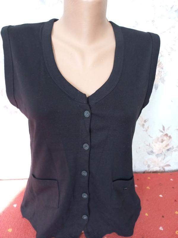 Колір насичений чорний, стан нової. В зоні декольте фіксується додатково (фото 4). ґудзики брендовані всі (фото 2)