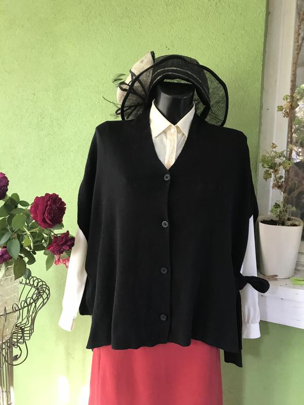 Стильна якісна жилєтка від COS. . Колір чорний. Склад-бавовна-100/(щільна, добре тримає форму). Розмір по бірці М. Заміри-довжина-48 см, ПОГ-67 см. Оверсайз. По боках -широкі зав‘язки.