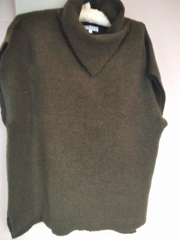 бутилочного кольору, довжина- 63/67 (по спині трохи довше), з воротом, вільного крою, плечі спущені 59 см, підійде з 10 по 14 розмір, у складі мохер