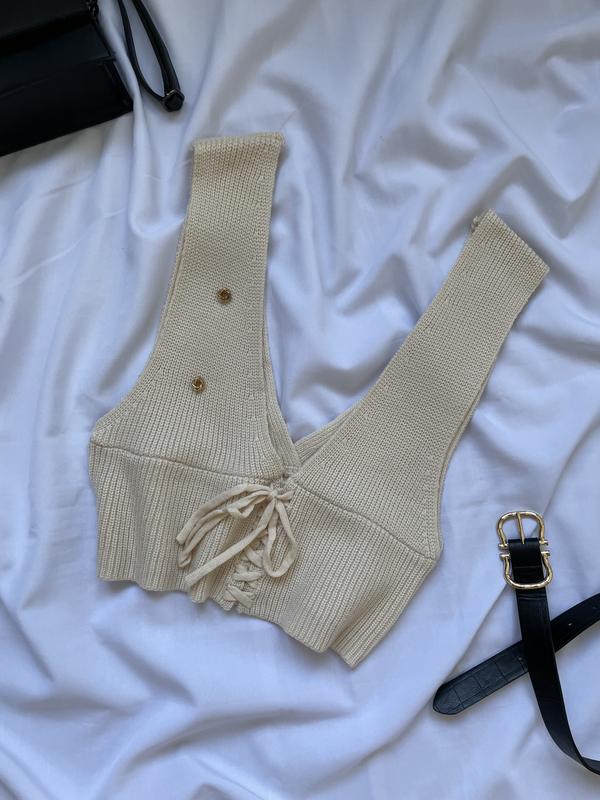 Кремовая жилетка с хорошим составом,спереди шнуровка,новая без бирки🌸🌸🌸