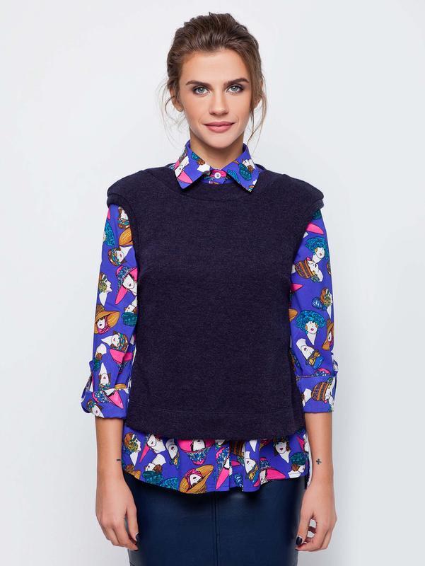 Укорочений жилет з теплого трикотажу, зі спущеною лінією плеча і бічними розрізами, відмінно підійде для повсякденного демократичного гардеробу і для офісу. Жилет "Крокус" стане практичним придбанням. Колір т. синій Тканина трикотаж Склад 80 % акрил 10 % вовна 10 % ангора Розмір 44 (підійде на С-М) Бирку відірвала, але не носила