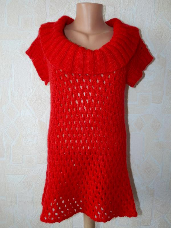 М’який, легкий, теплий, пухнастий. ПОГ 48-56см, плече20см, длина 78/82см Широкий, високий ворот. В’язаний спицями