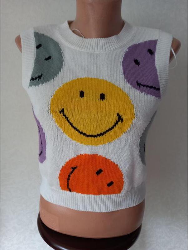 Стильна кофта-безрукавка, розмір XS, S. стан нової. Довжина 43 см, ПОГ 42 см, півобхват резинки внизу 33 см.