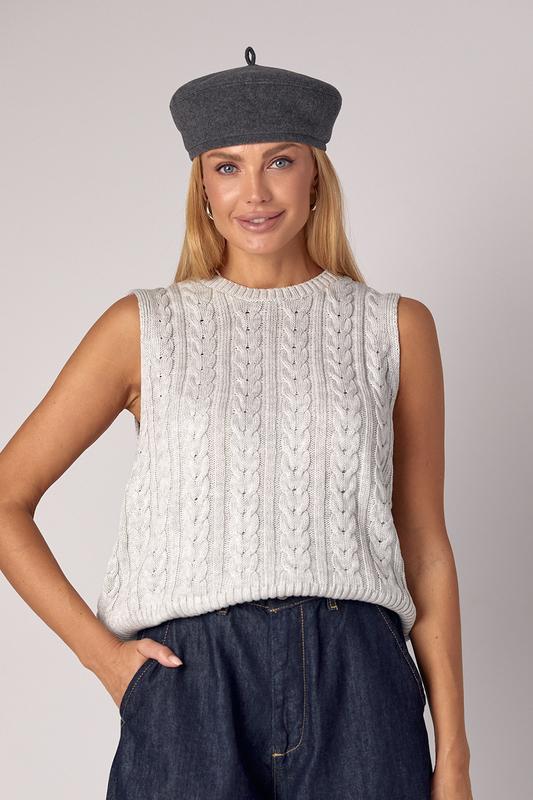 В'ЯЗАНА ЖИЛЕТКА В КОСИЧКИ З ВИРІЗОМ НА СПИНІ ЗАМІРИ ВИРОБУ Довжина переду виробу, см XS - 50см; S - 51см; M - 52см; L - 53см Ширина під проймами рукавів (над грудьми), см XS - 48см; S - 52см; M - 56см; L - 60см Довжина по боковому шву, см XS - 25см; S - 26см; M - 27см; L - 28см РОЗМІРНА СІТКА ХАРАКТЕРИСТИКА ТОВАРУ Країна Туреччина Тканина В'язка Склад тканини 95% віскоза, 5% лайкра Параметри моделі 89*70*95 зріст 168 Розмір на фото S ОПИС АРТ. 6567 Нудний офісний дрес-код легко можна розбавити цікавими деталями. Наприклад, модним жилетом у стилі оверсайз. Вибирайте свій улюблений колір та підкорюйте нові вершини! Ця модель у стилі оверсайз повністю прикрашена візерунком із косичок, а пройми доповнені англійською в'язкою. Горловина кругла, а на спинці є краплеподібний виріз із застібкою на гудзиках унизу. Прямий низ закінчується широкою манжетою
