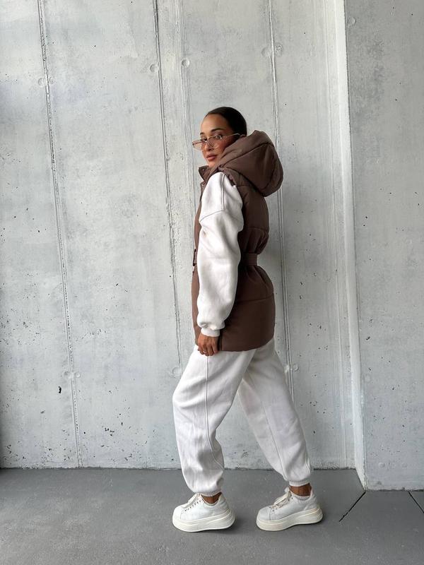 арт. pp. 002 Жилетка застібається на блискавку та кнопки, кнопки та ремень йдуть в колір плащівки. Капюшон подвійний (внутрішня частина капюшона зроблена з плащівки). Неймовірно гарна модель. Відмінна якість та гарне пошиття. Розмір: 42-44, 46-48 Кольори: чорний, молоко, беж, мокко, бузковий Тканина: плащівка "Канада" матова Туреччина Наповнювач: синтепон щільність 200