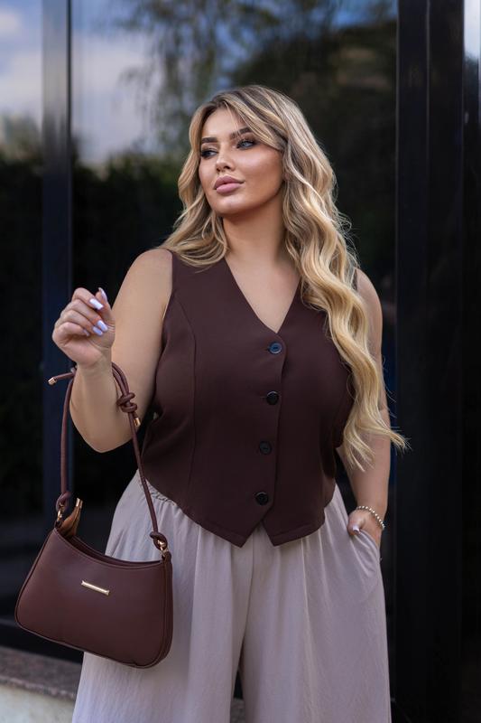 ‼️ВІДПРАВКА ВПРОДОВЖ 2-5 РОБОЧИХ ДНІВ ‼️ Жіночий жилет класичний "Justin" Кольори: бежевий, темно-синій, марсала, шоколадний Розміри: 42-44, 46-48, 50-52, 54-56 Матеріал: креп костюмка (90% поліестер, 10% спандекс). ⠀Стильний жилет у класичному стилі виготовлений із креп-костюмки. Тканина досить міцна, але не груба, красиво лягає по фігурі і не обтяжує образ. Вироби з цього матеріалу виглядають досить вигідно та стильно. Модель класичного фасону має такі особливості дизайну: - V-подібний виріз без коміра; - прямий напівприталений крій. - застібається на чотири гудзики. Арт: 4863FГ
